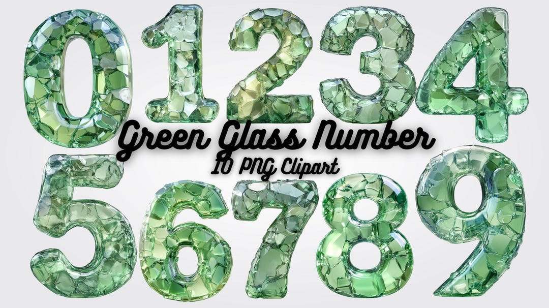 Emerald Green Glass Numbers PNG: Digital Font Clipart (12x12" 300 DPI ...