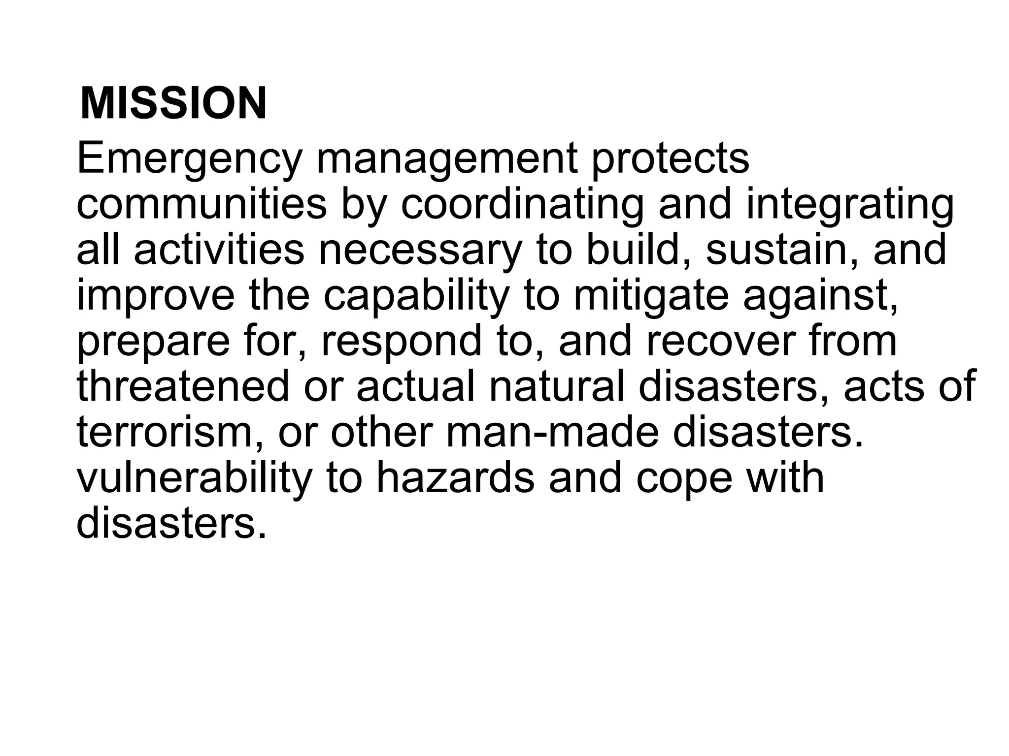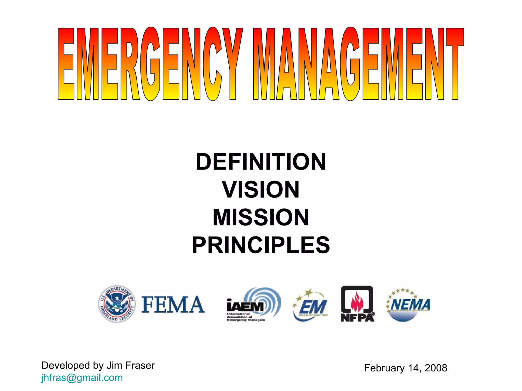 Emergency Management Definition Vision Mission Principles at Chin ...