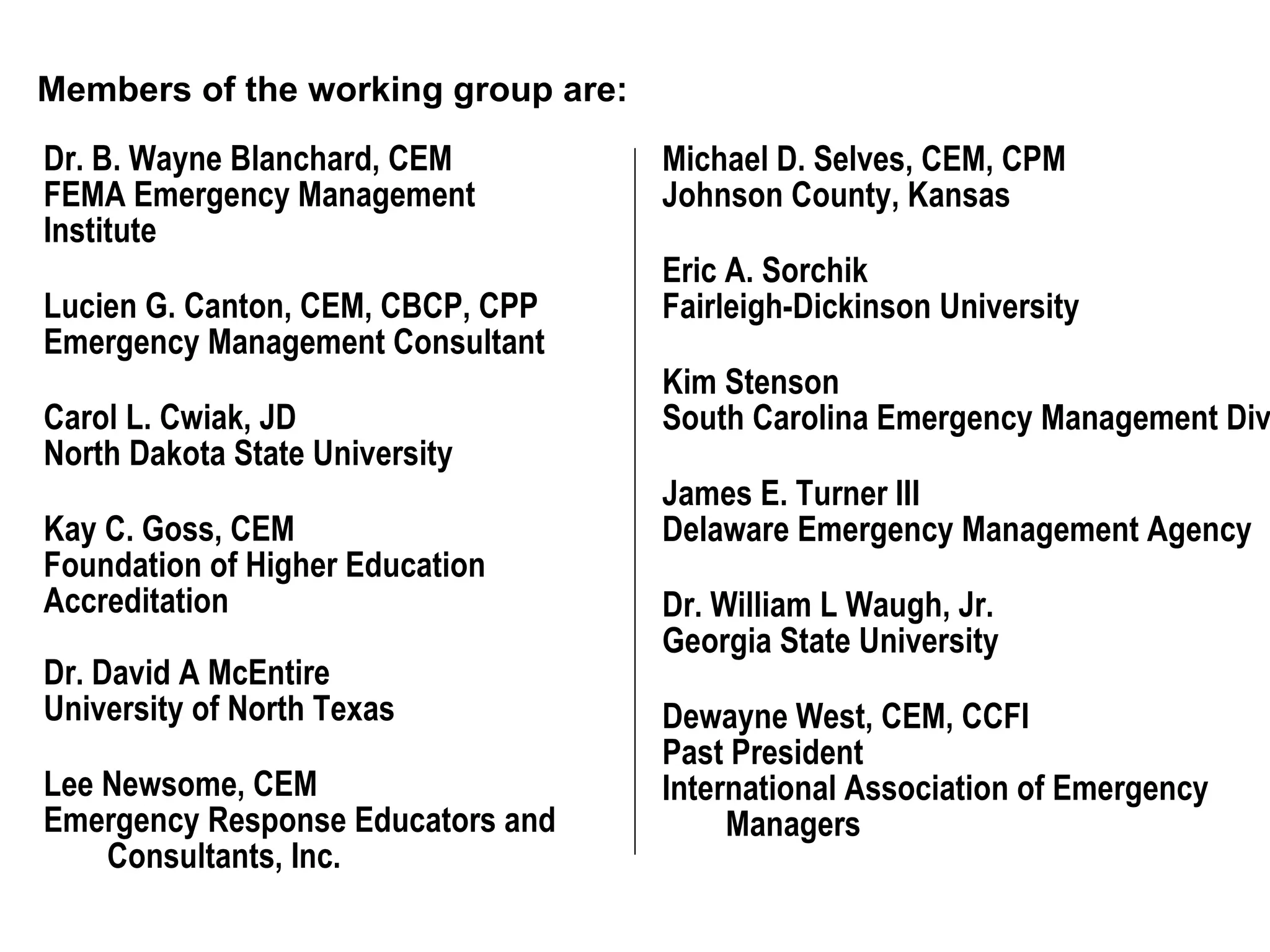 Emergency Management Roundtable Core Principles of Emergency Management