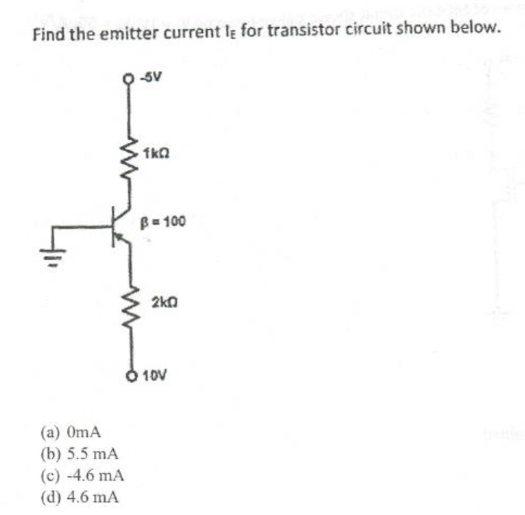 Solved Find the emitter current IE for transistor circuit | Chegg.com