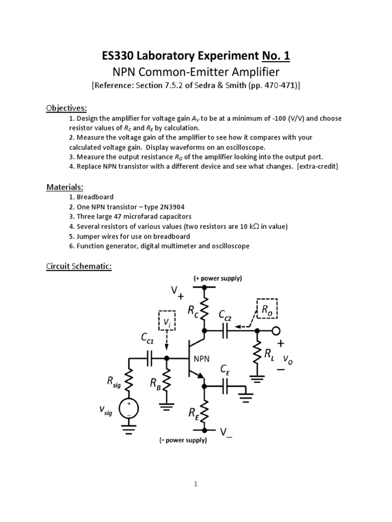 ES330 Laboratory Experiment No. 1: NPN Common-Emitter Amplifier | PDF ...