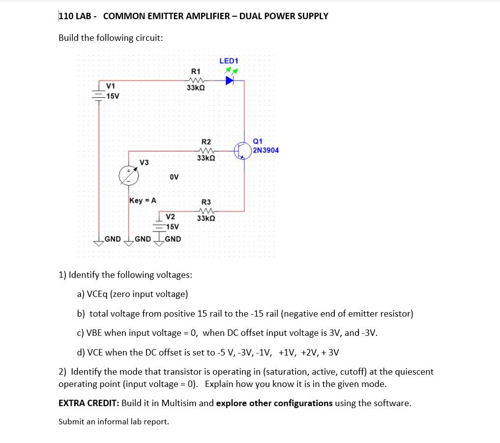 Solved 110 LAB - COMMON EMITTER AMPLIFIER - DUAL POWER | Chegg.com