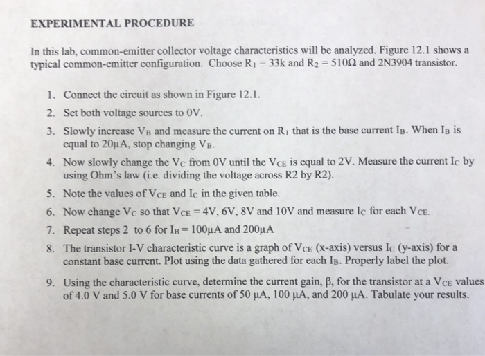 EXPERIMENTAL PROCEDURE In this lab, common-emitter | Chegg.com