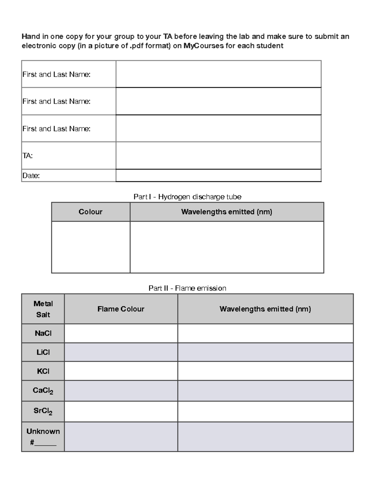 Atomic Emission Lab Report - Fall 2024 - CHEM-110 112 - Studocu