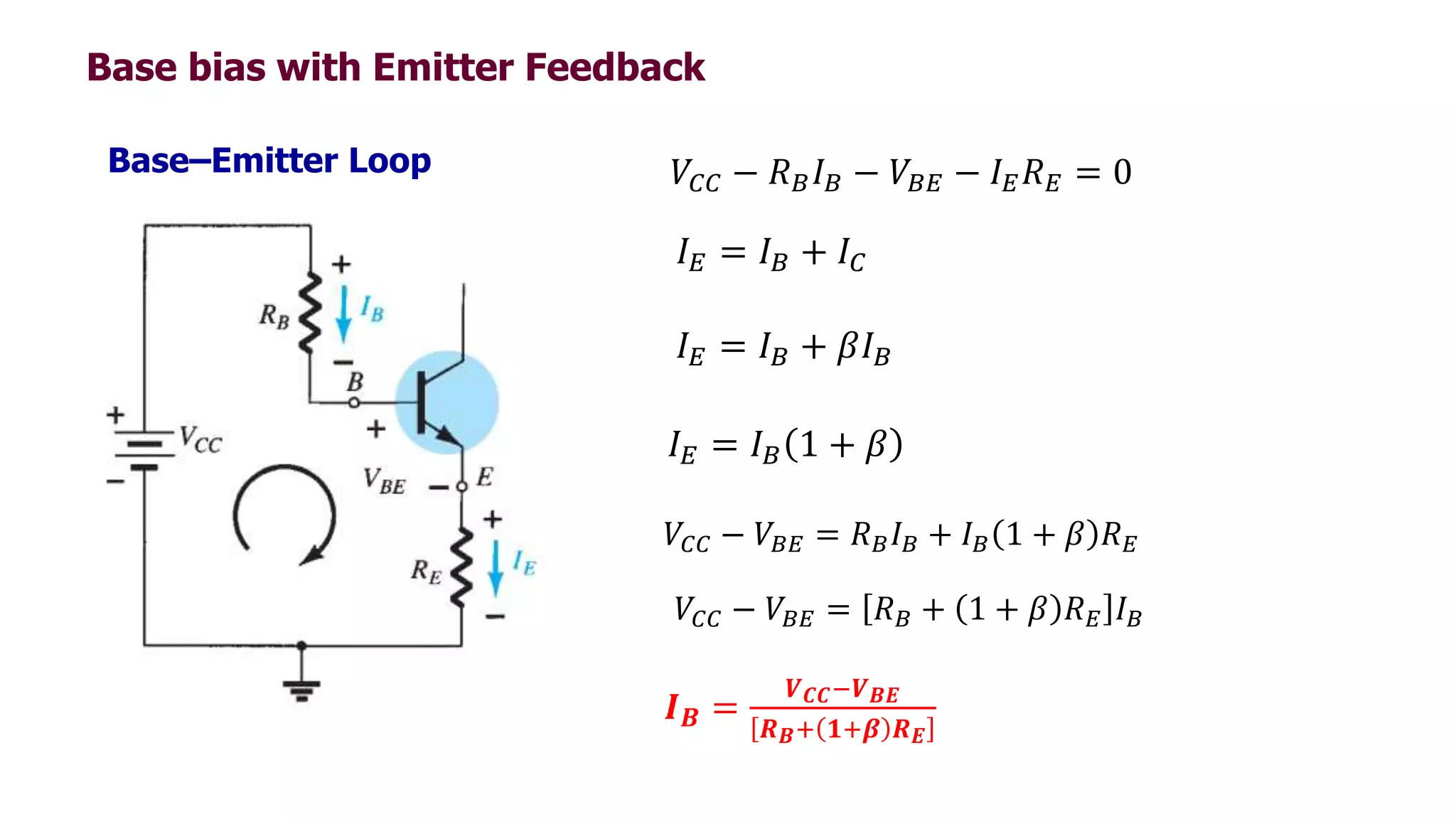 the base emitter loop from kirchhoffs law of circuit vc c ib rbvb e0 ...