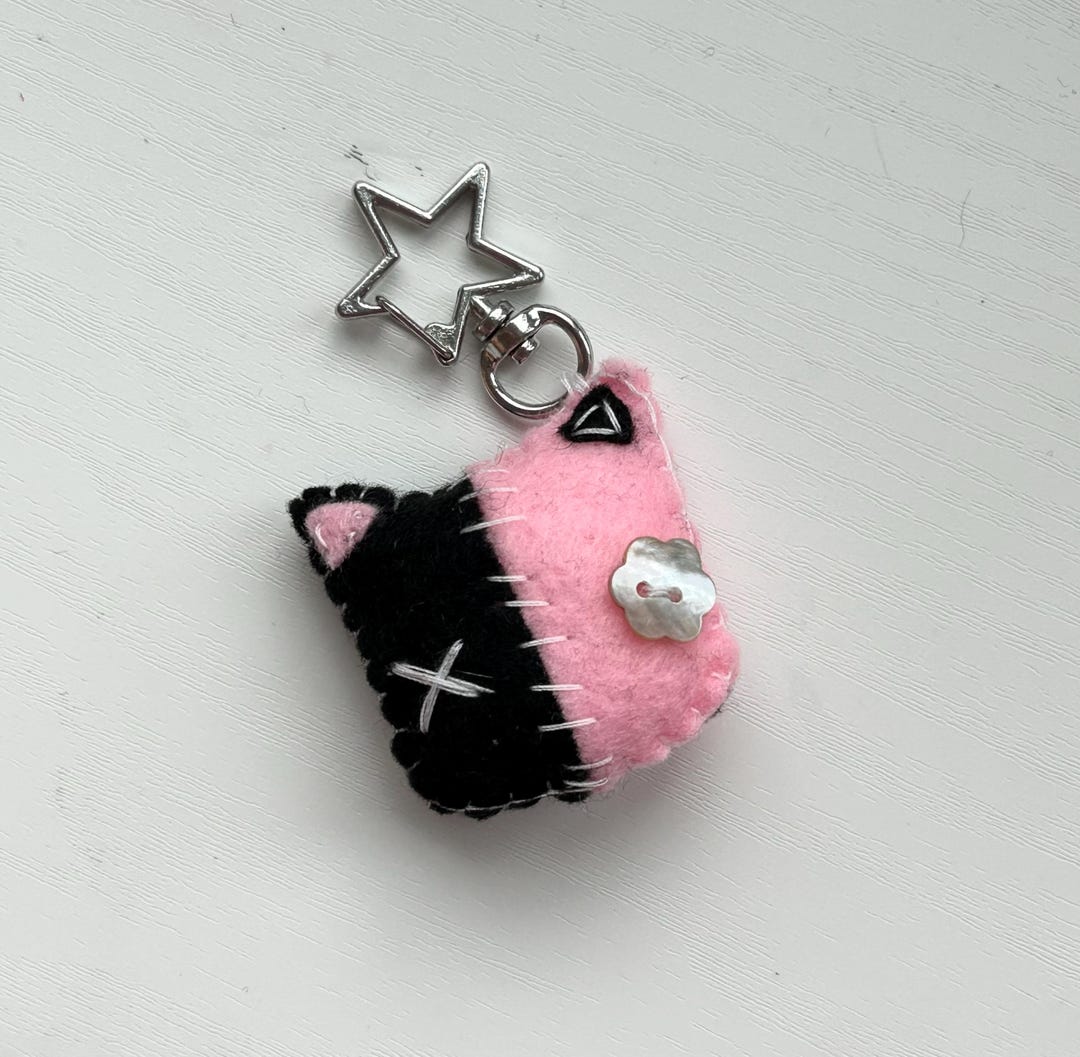 Kawaii Felt Cat Keychain: Emo Plush Charm, Pastel Goth Bag Accessory - Etsy