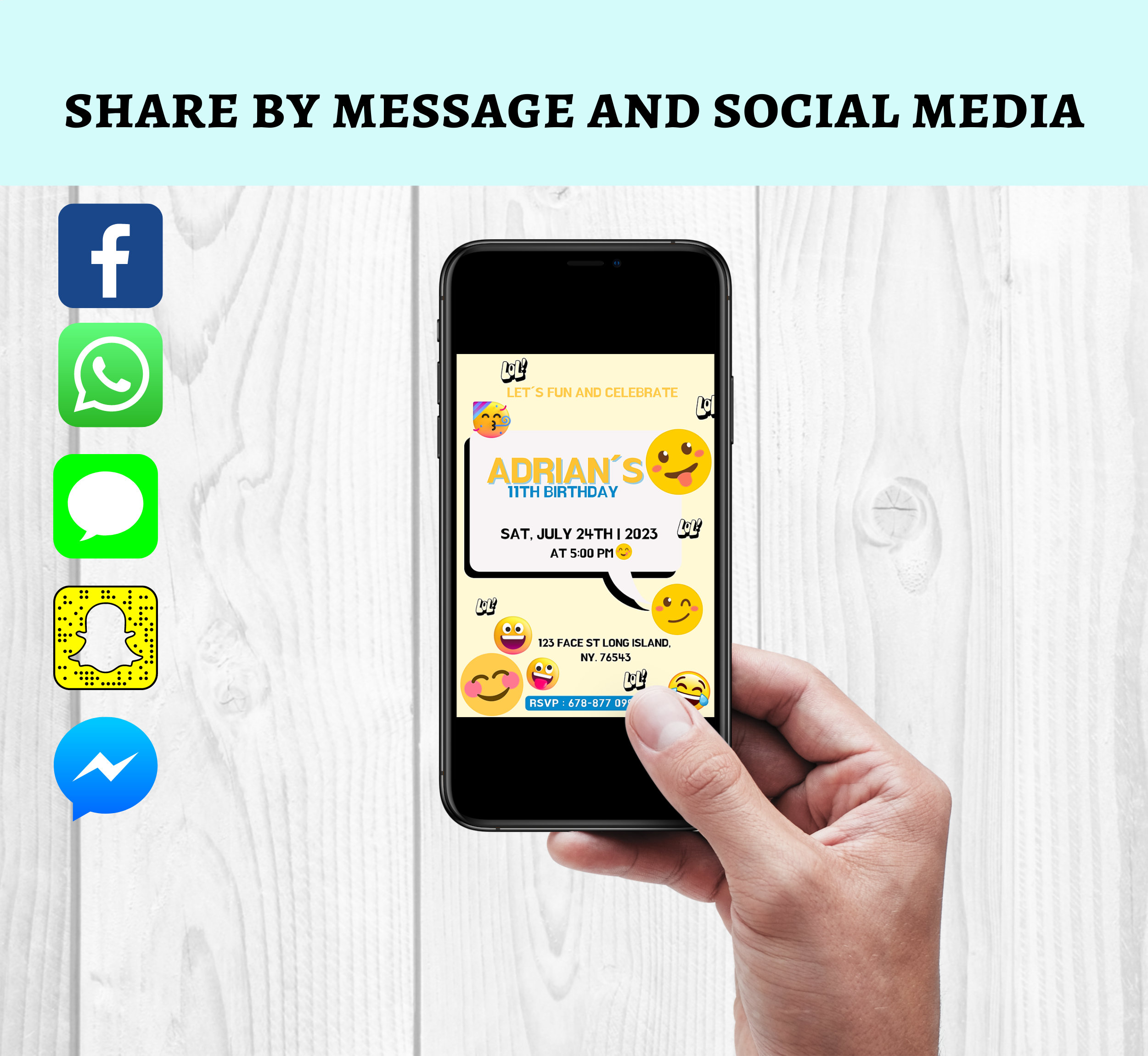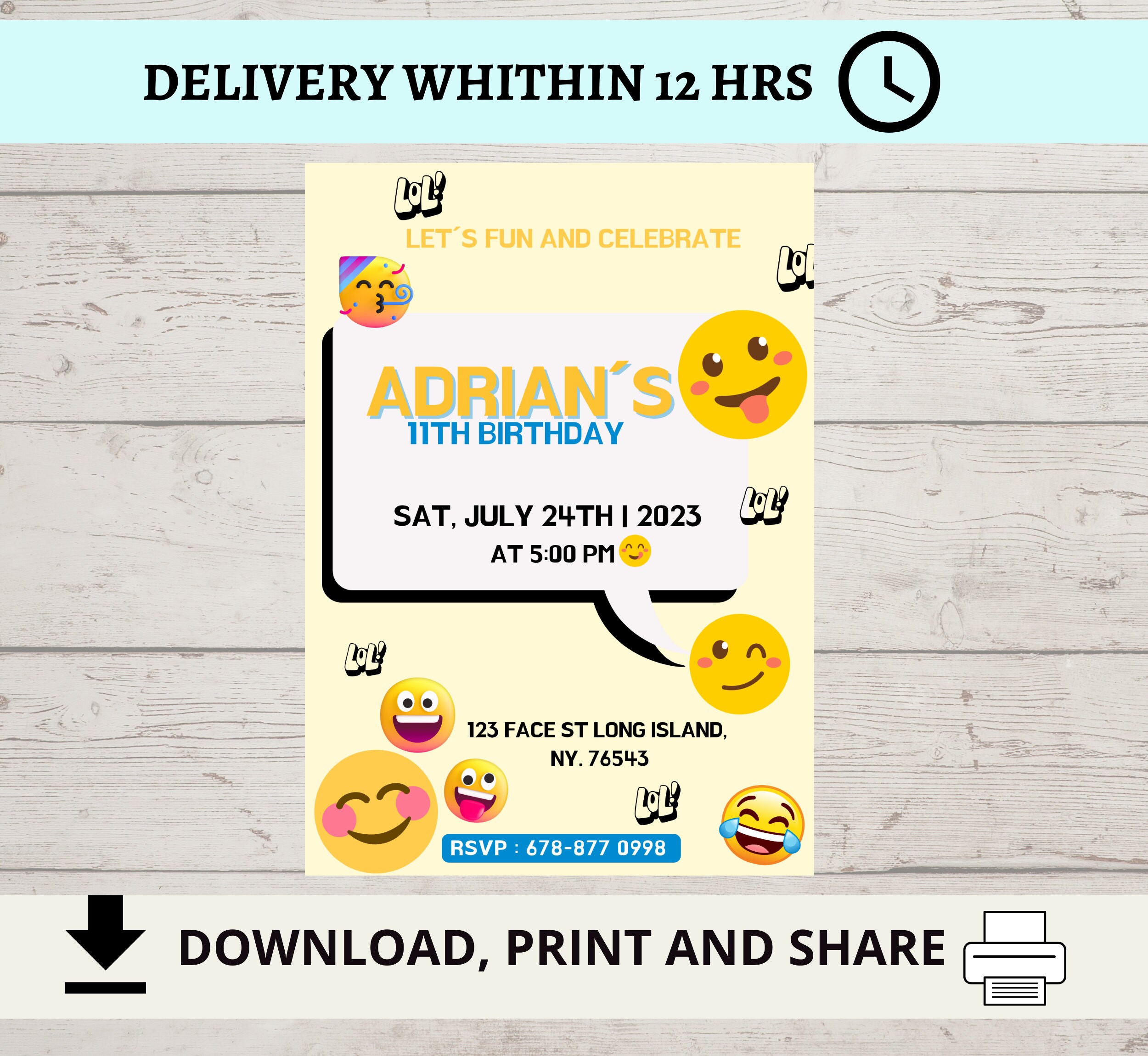 Emoji Invitation, Faces Emojis Invitation, Digital Emojis Invitation ...