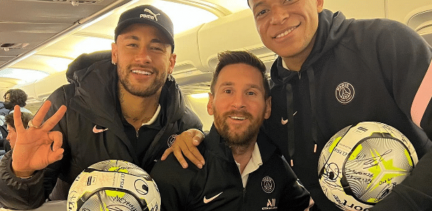 Neymar posa com Messi e Mbappé após hat-trick e ironiza: 'Bêbado' - 10 ...