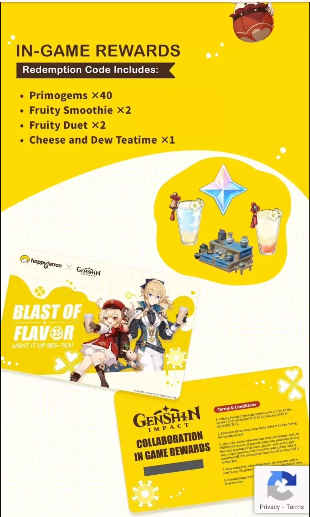 Genshin Impact Happy Lemon Code no Card - Etsy