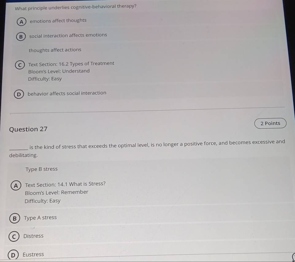 Solved: What principle underlies cognitive-behavioral therapy? A ...