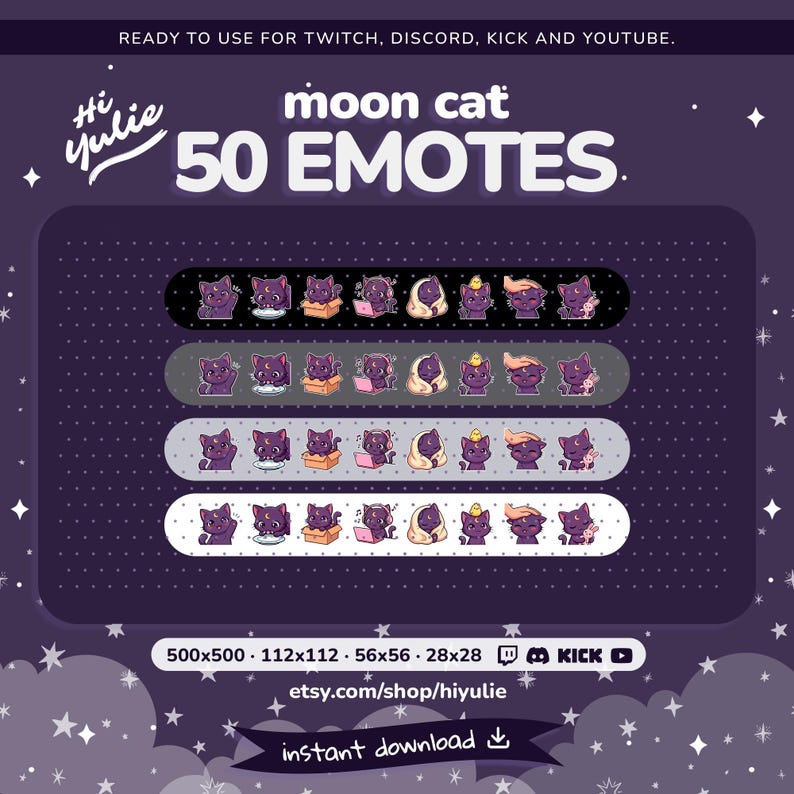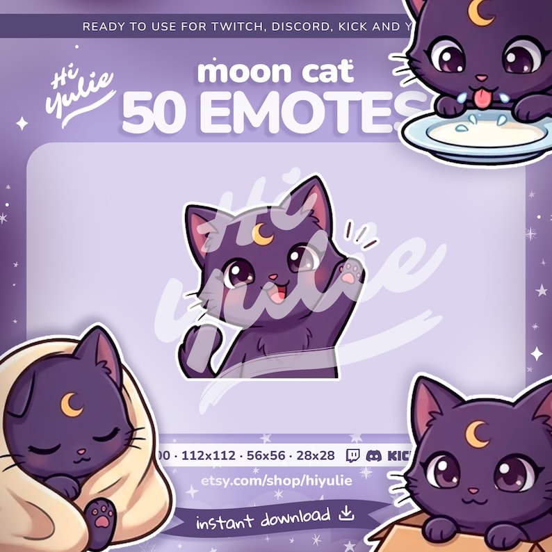 Moon Cat Emotes (50) - Kawaii Chibi Kitty Twitch Discord - Purple Black ...