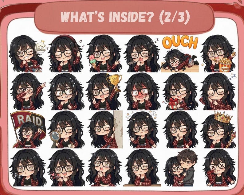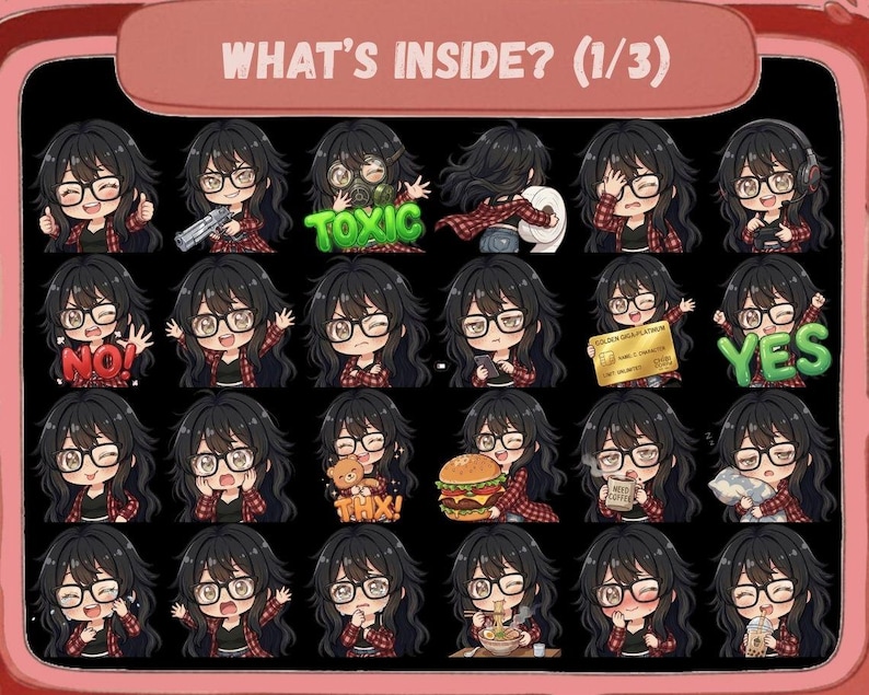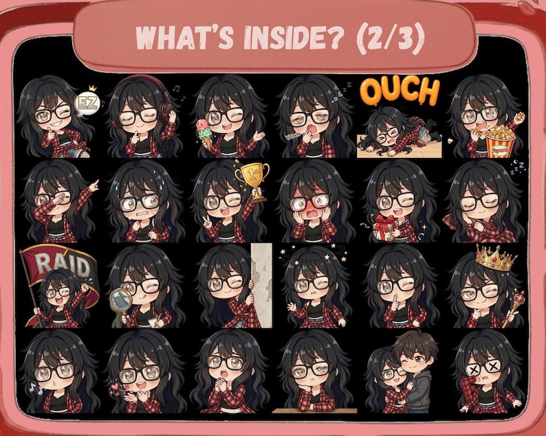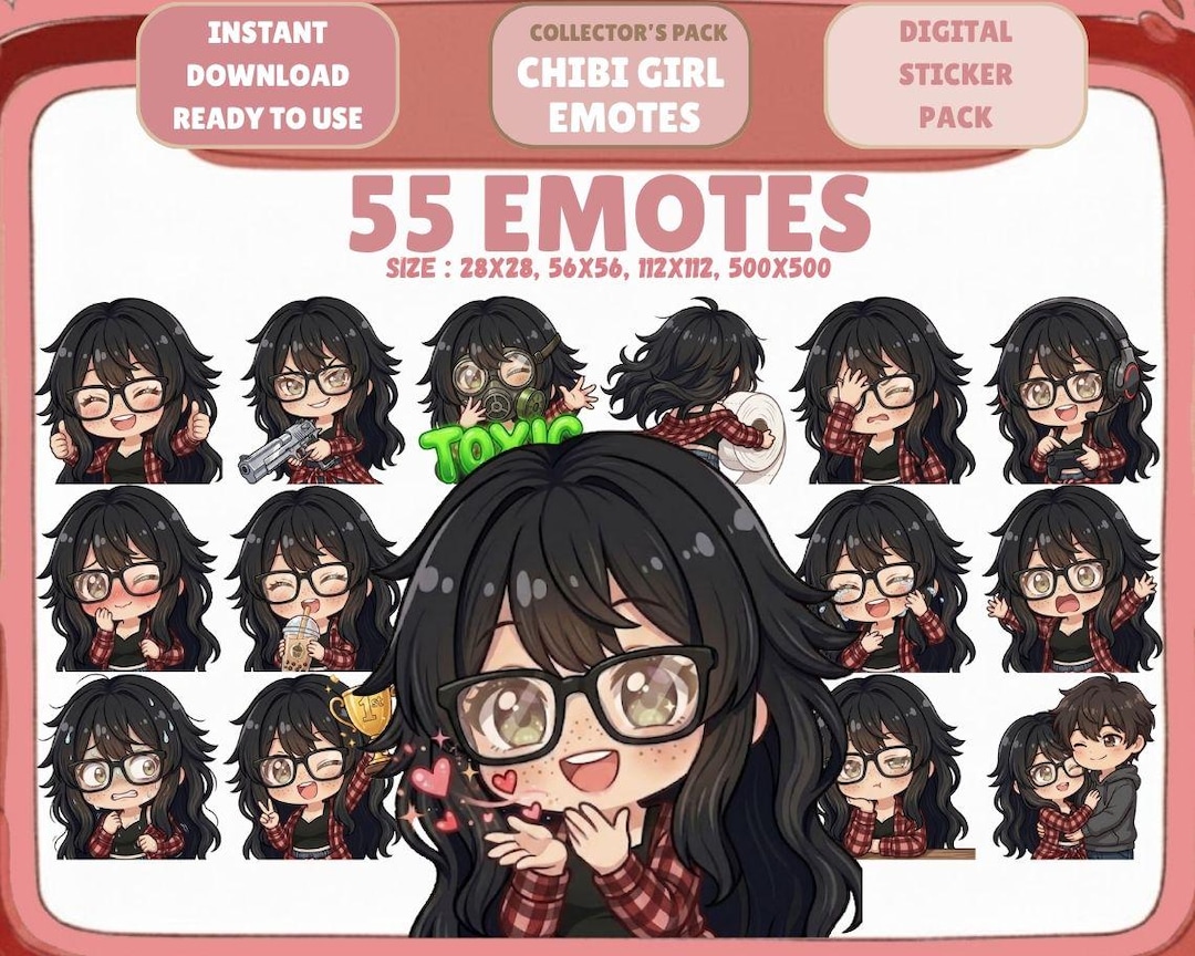 55 Emotes de Chica Pecosa con Cabello Negro: Kawaii Chibi Twitch ...