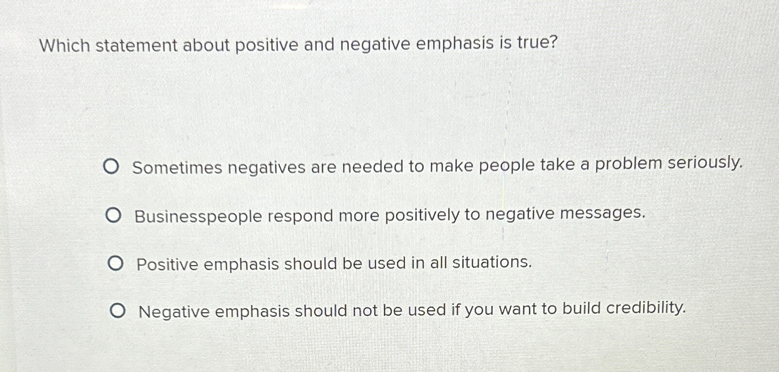 Solved Which statement about positive and negative emphasis | Chegg.com