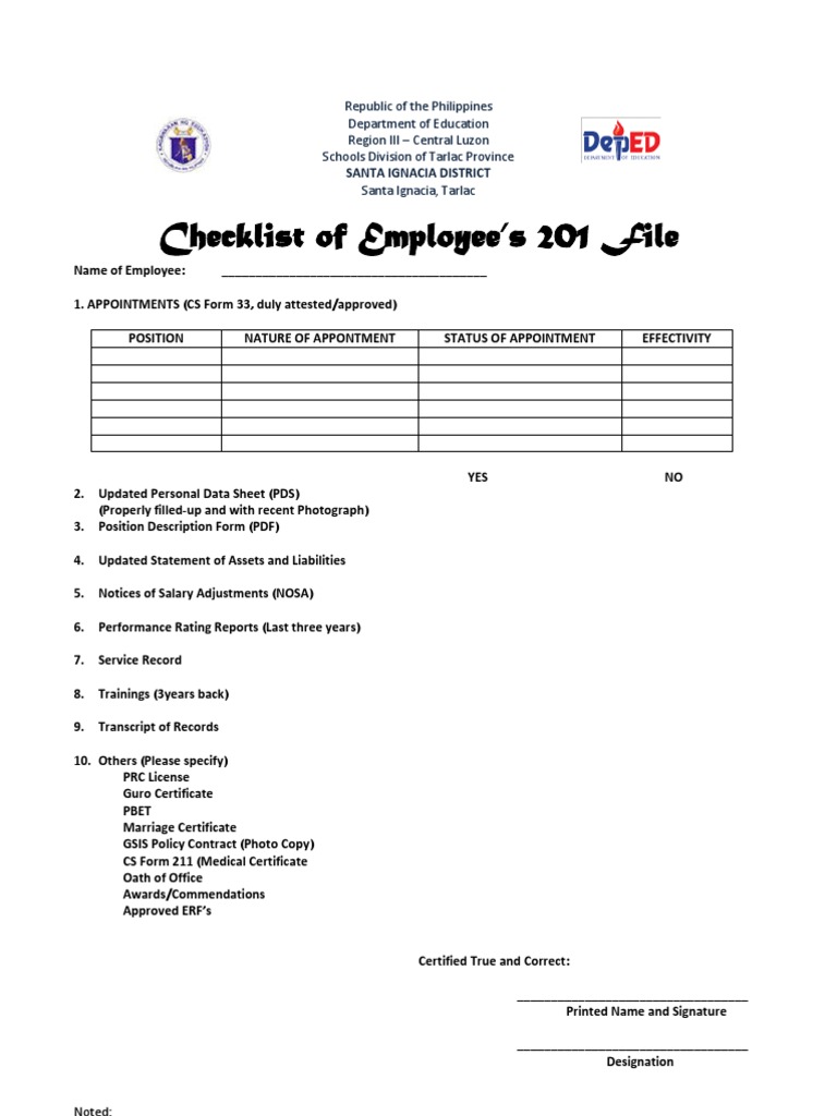 Philippines Education Dept Employee 201 File Checklist | PDF ...