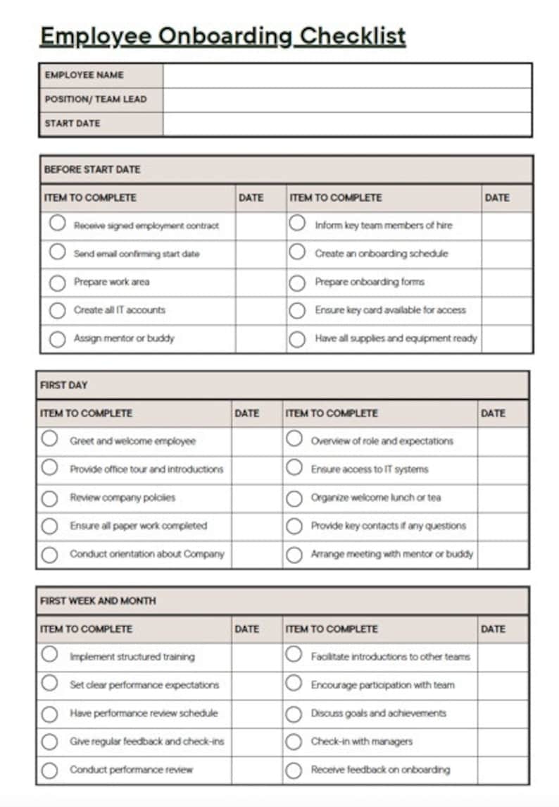 New Employee Onboarding Checklist Template - Etsy