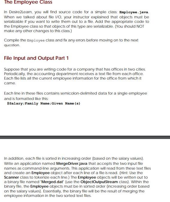 Solved The Employee Class In Desire2Leam, you will find | Chegg.com