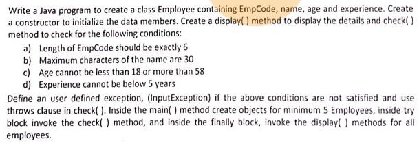Solved Write a java program to create a class Employee. The | Chegg.com
