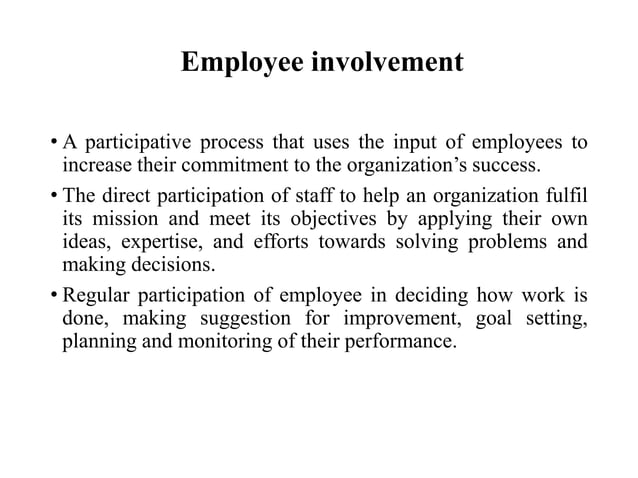 PPT - Enhancing Employee Involvement & Participation in Organizations ...
