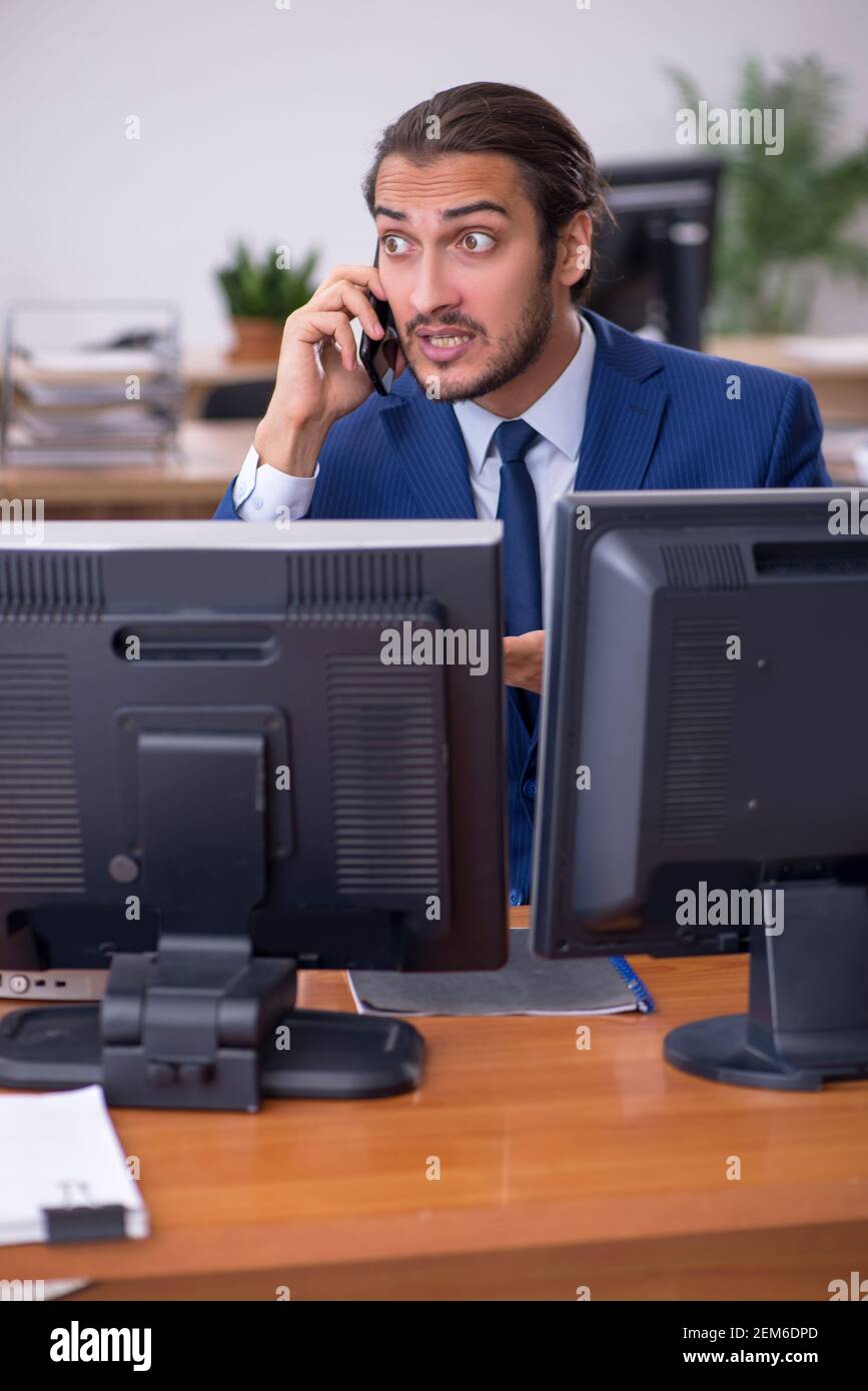 Concentrated Young Businessman Entrepreneur Employee Multitasking库存照片 ...