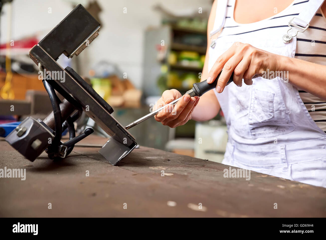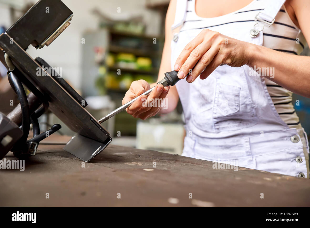 Female worker using screwdriver Stock Photo - Alamy