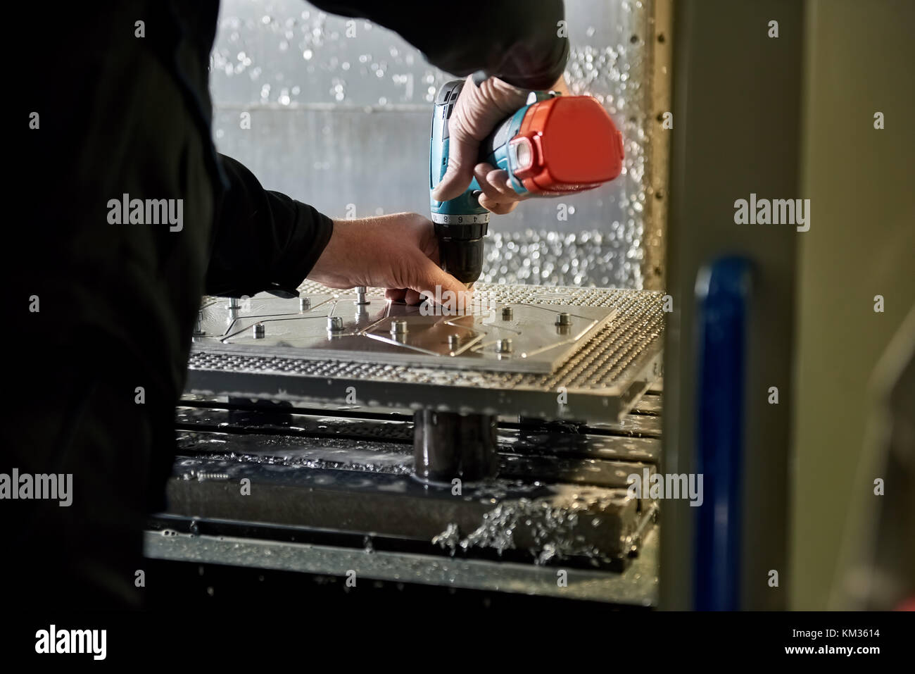 Using screwdriver. Man is working in the modern factory Stock Photo - Alamy