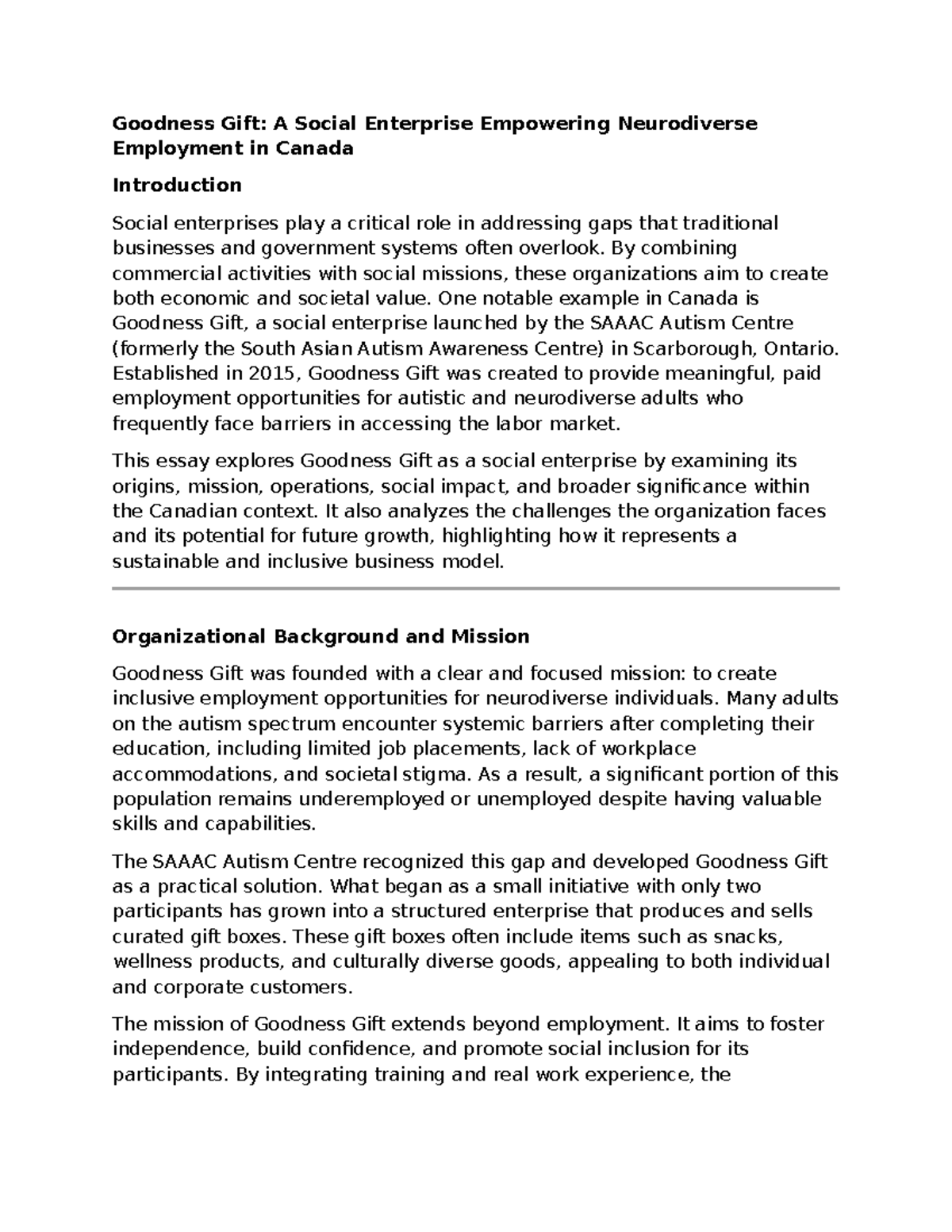 Goodness Gift: Empowering Neurodiverse Employment in Canada - Studocu