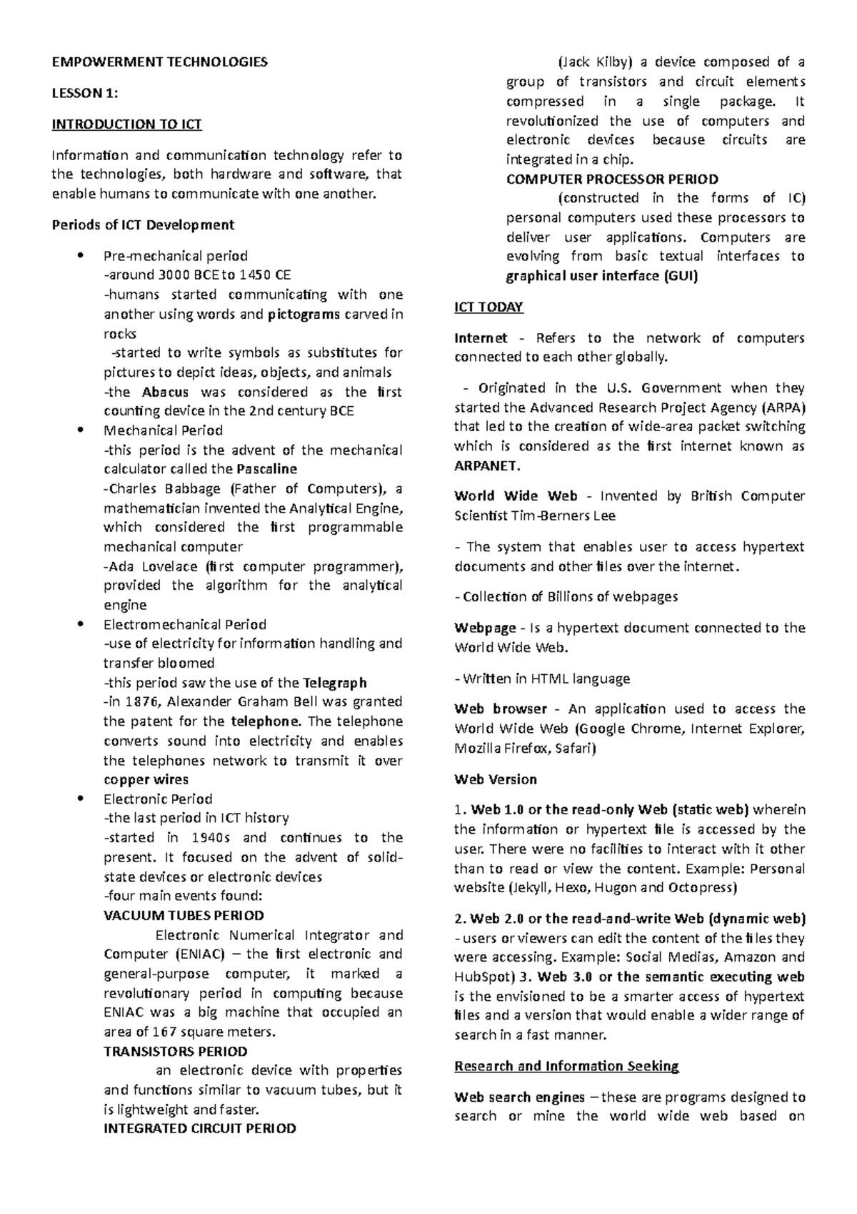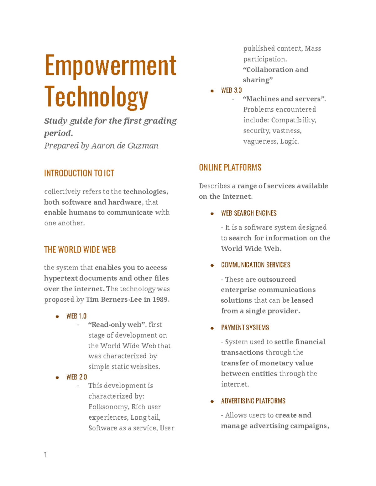 Emptech- Grade 11 Midterm Review on Empowerment Technologies - Studocu