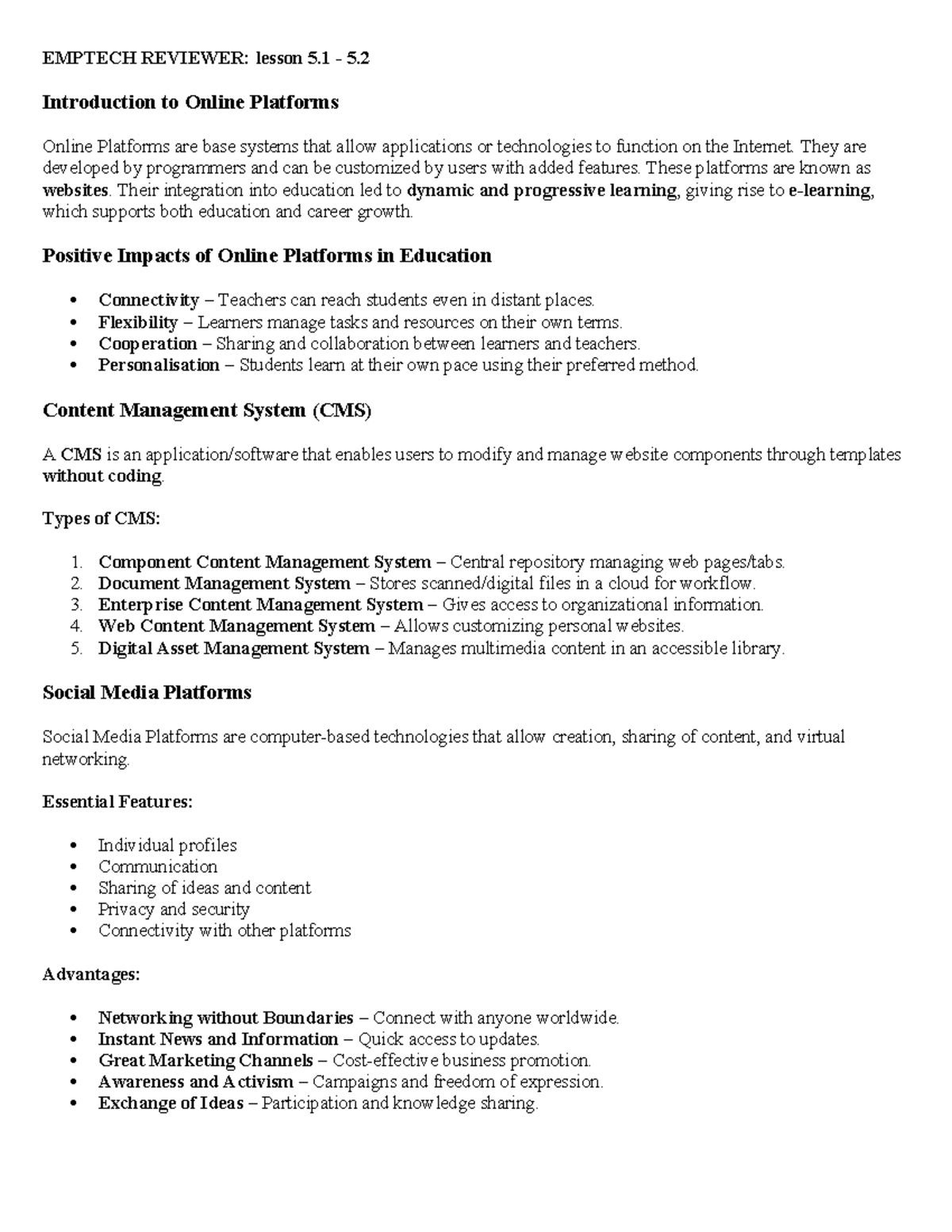 Emptech Reviewer: Lesson 5.1-5.2 on Online Platforms - Studocu