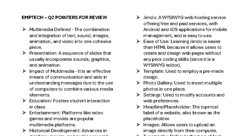 EMPTECH Q2 REVIEW: Understanding Multimedia and Online Tools - Studocu