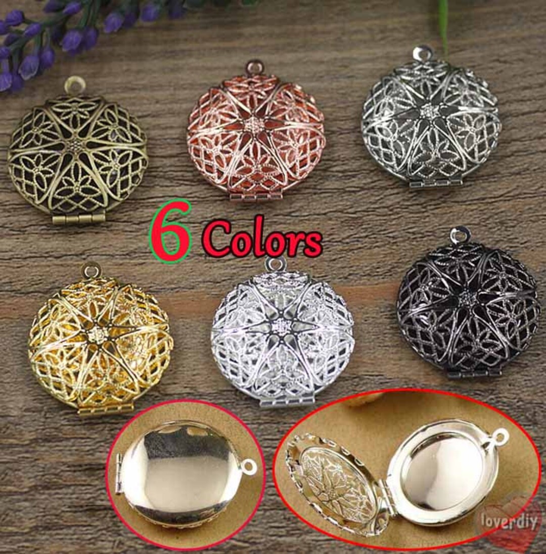 10pcs 27MM Round Hollow Out Filigree Blank Photo Locket (6 Colors ...