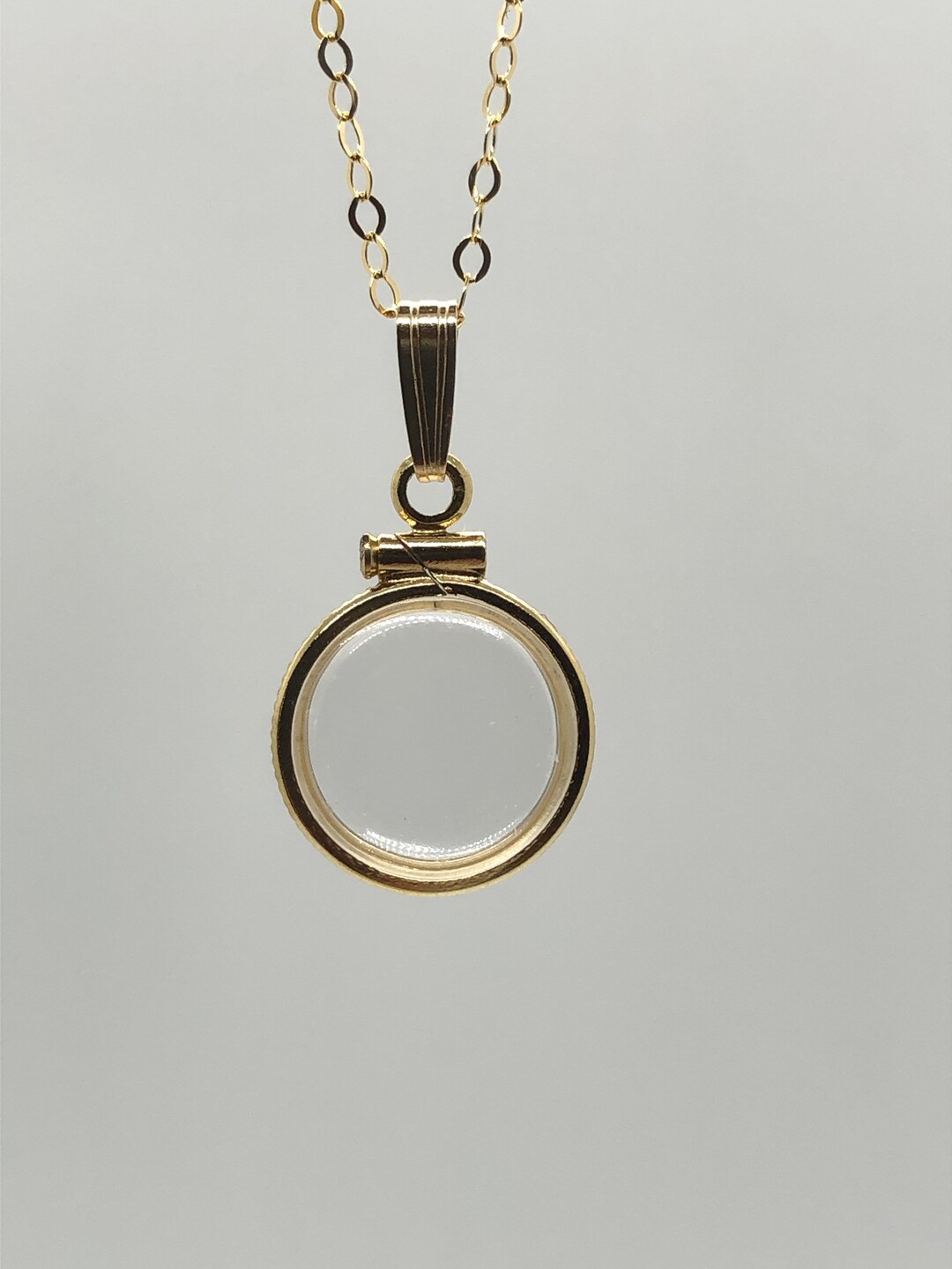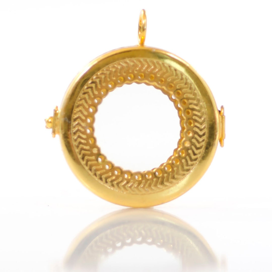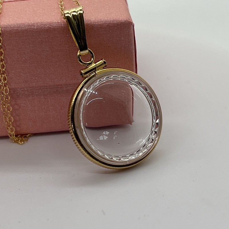 Glass Locket Empty Gold Shadow Box Pendant Frame, Round, 2 Sided Etched ...