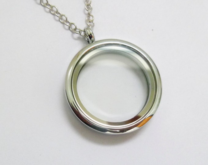 Empty Blank DIY Floating Memory Locket Necklace / 30mm Round Silver ...