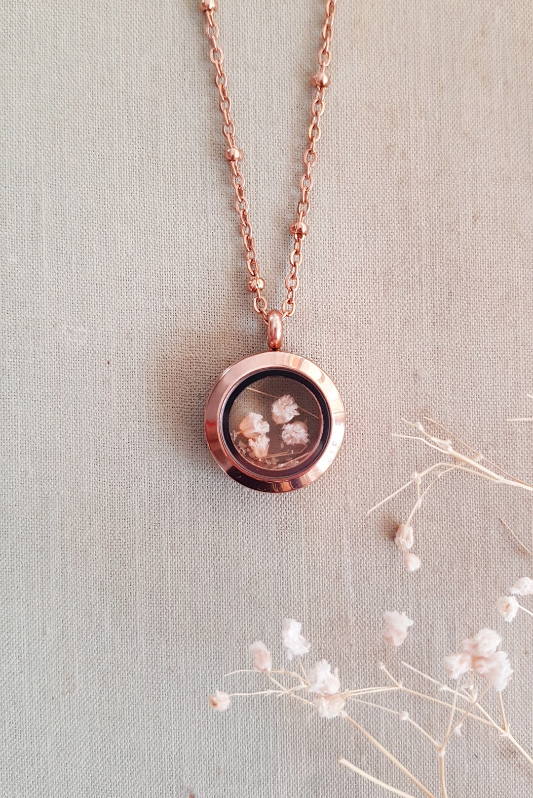 Rose Gold Round Keepsake Locket Necklace, Shaker Style Floating Glass ...