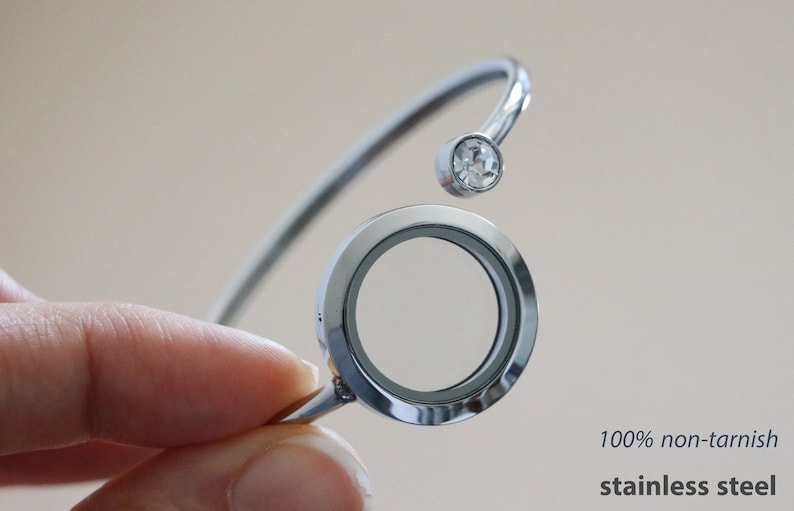 TINY Photo or Memento Floating LOCKET Glass and Stainless Steel 17mm on ...