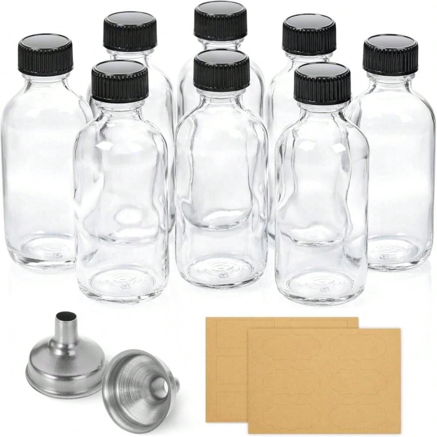 8 Pack 2 Oz Small Clear Glass Bottles W Lid Amp 2 Funnels 60ml Boston ...