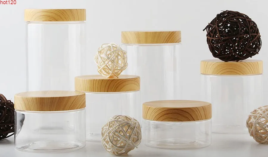 12-Pack Clear PET Plastic Jars with Faux Wood Lids - 200ml to 1000ml ...