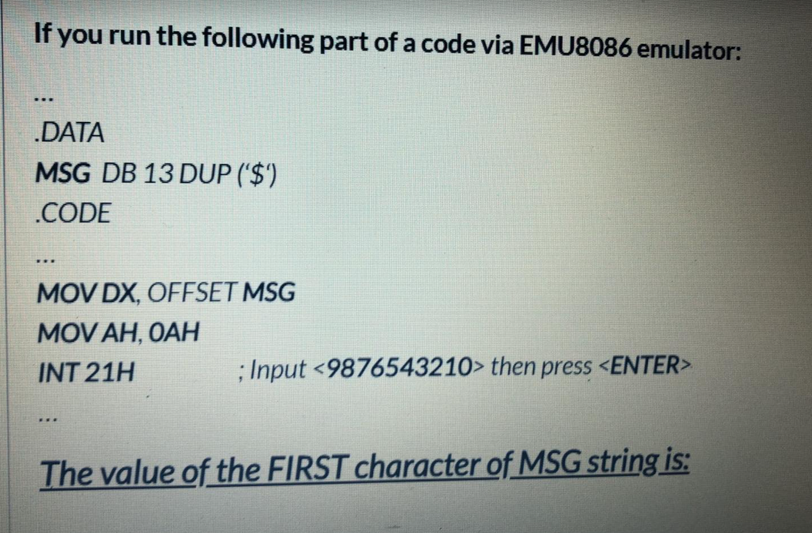 Instructions: Use Emulator EMU8086 to run the | Chegg.com