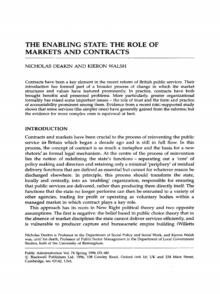 Deakin, Walsh - 1994 - The Enabling State the Role of Markets and ...