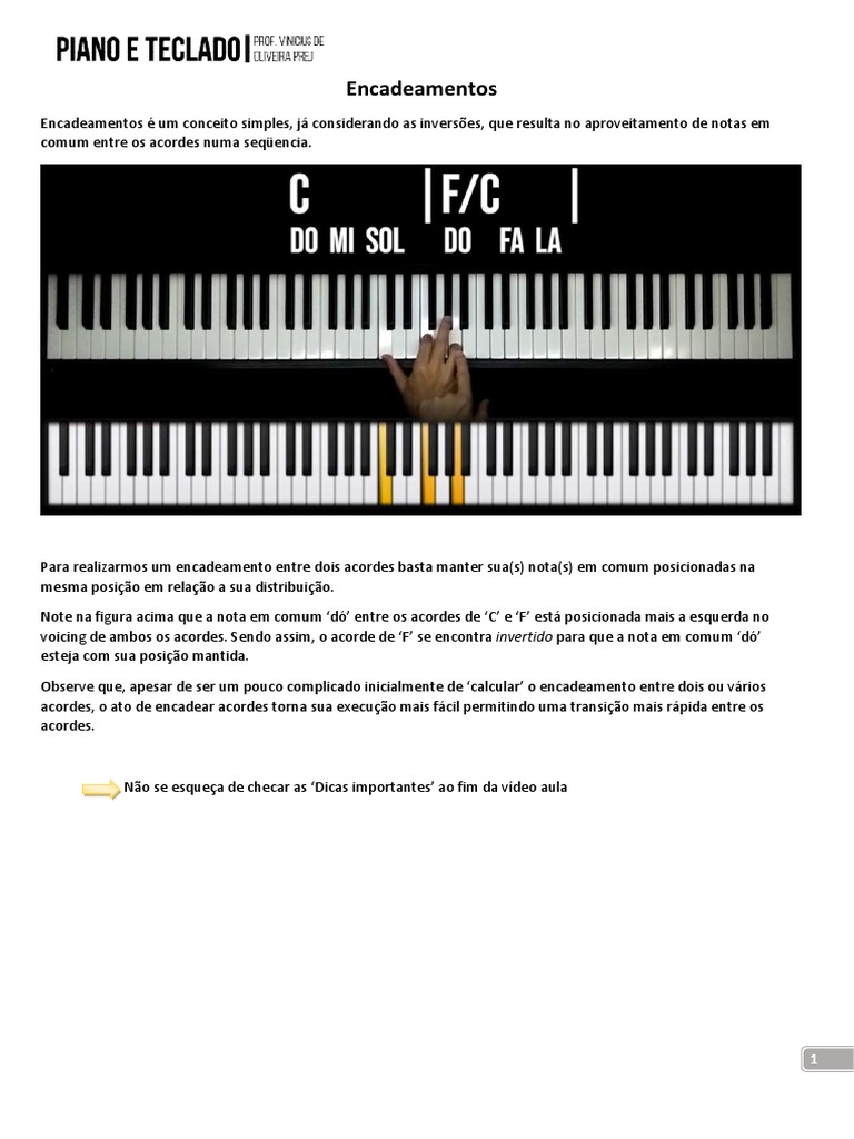 Encadeamento, a forma mais fácil e bonita de tocar no teclado os hinos ...