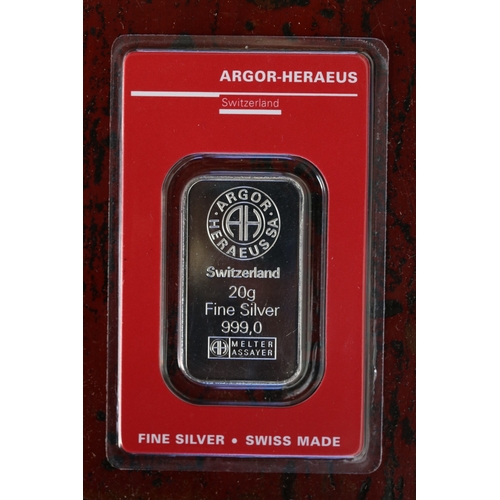 20g Fine 999 Silver Bar by Argor Heraeus Switzerland Encapsu... | Barnebys