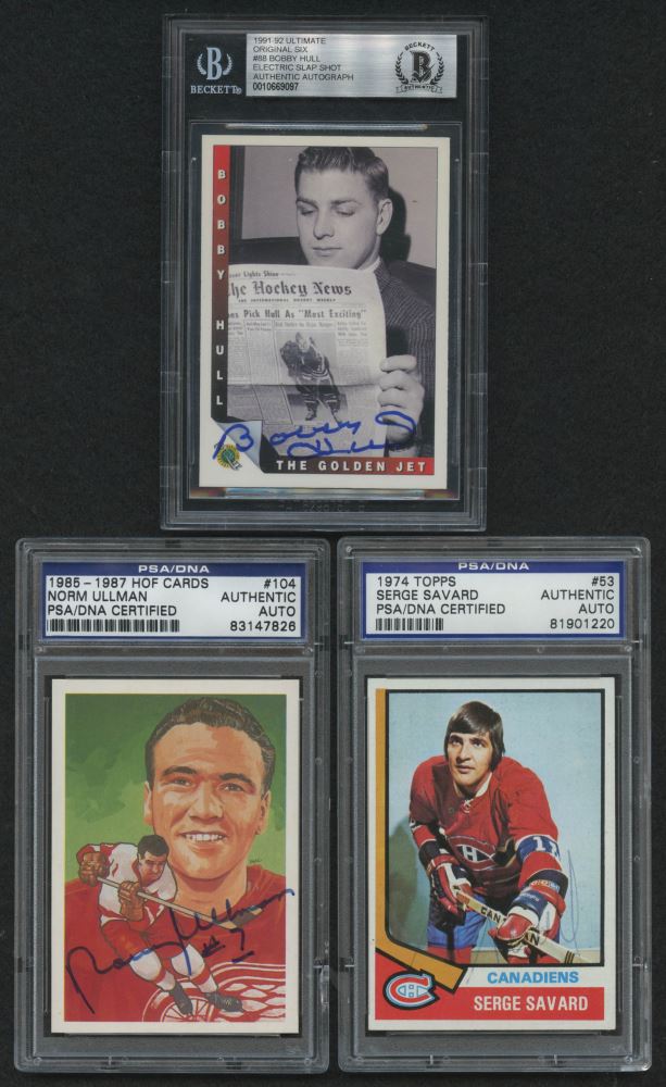 Lot of (3) Signed Encapsulated Hockey Cards with 1985-87 Hall of Fame ...