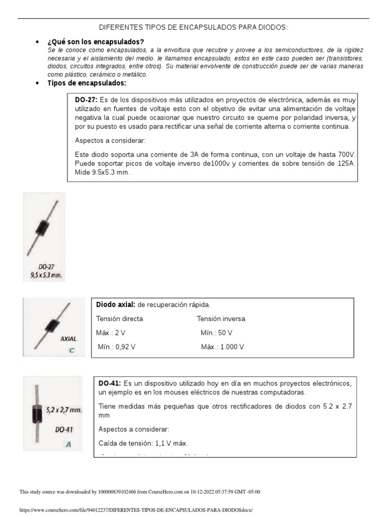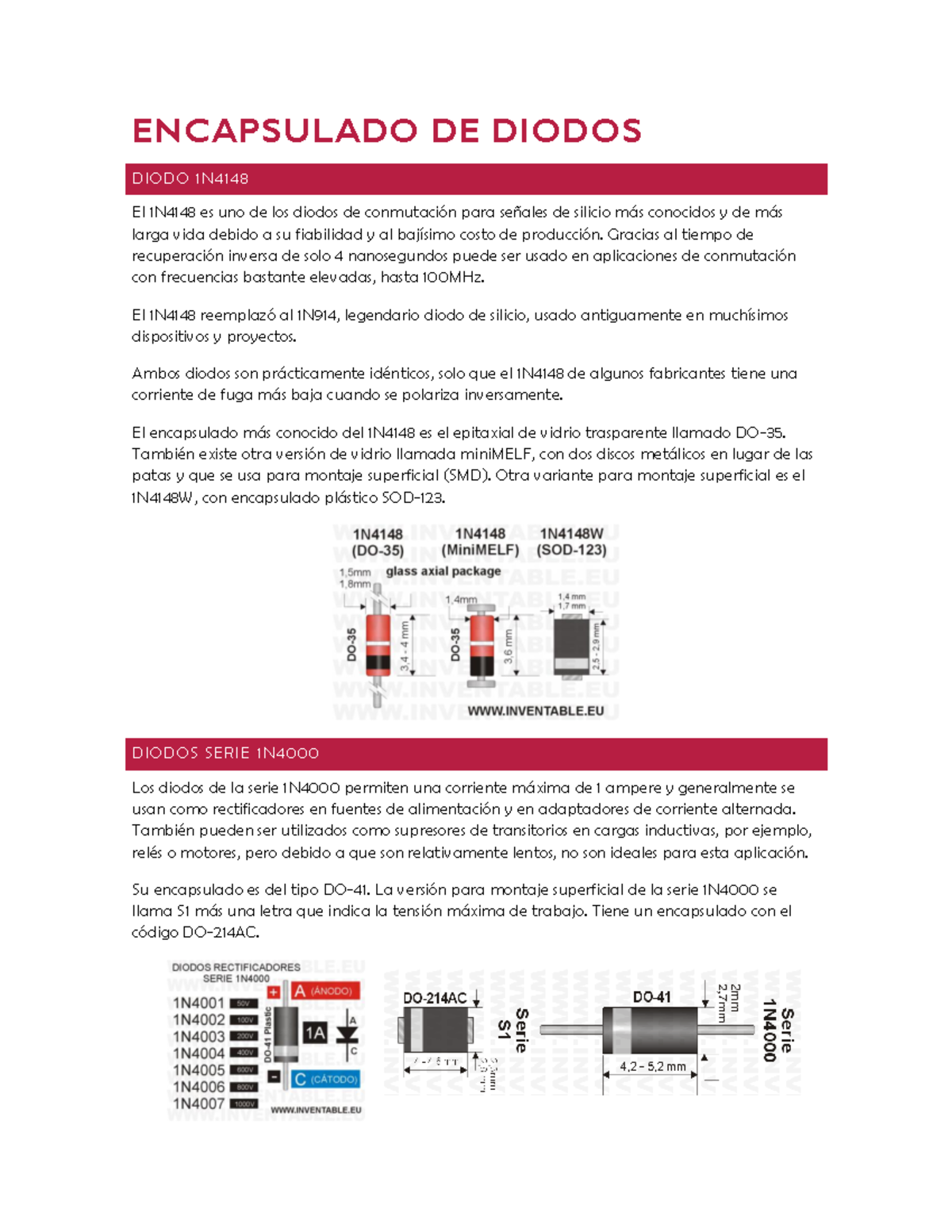 Tipos de Encapsulado de Diodos: 1N, 1N4000 y Otros Modelos - Studocu