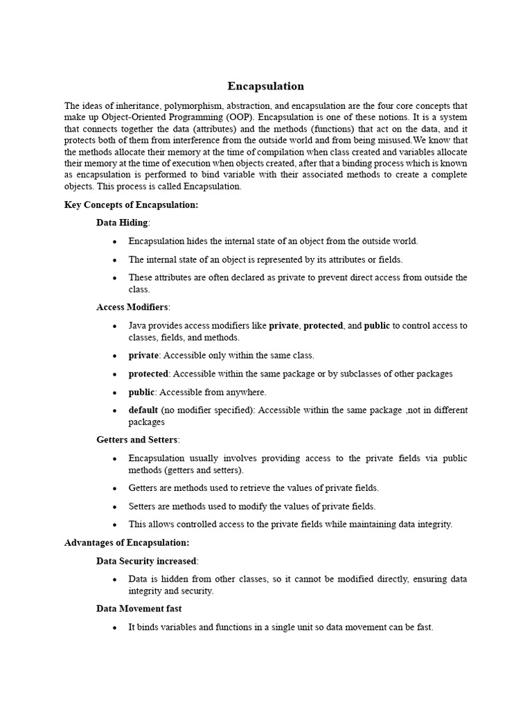 Encapsulation: Key Concepts of Encapsulation: Data Hiding | PDF