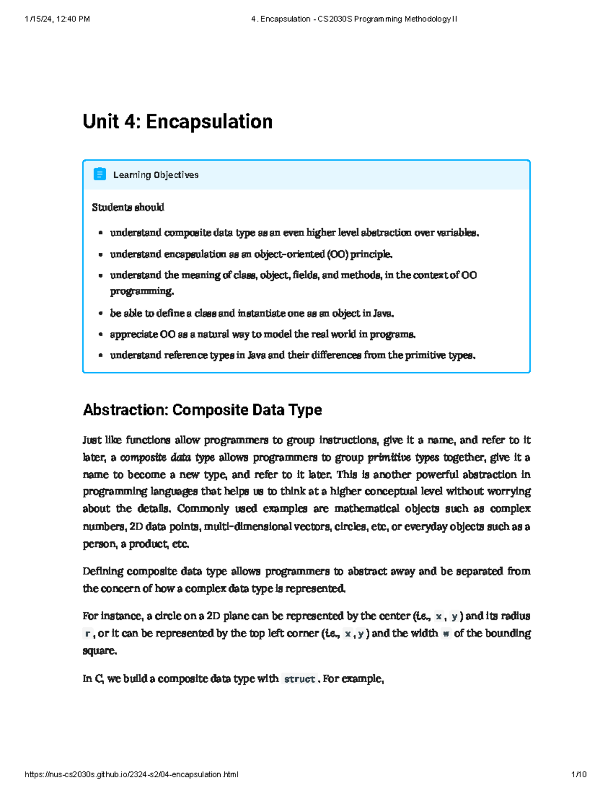 Unit 4: Encapsulation - Key Lecture Notes on OO Principles - Studocu