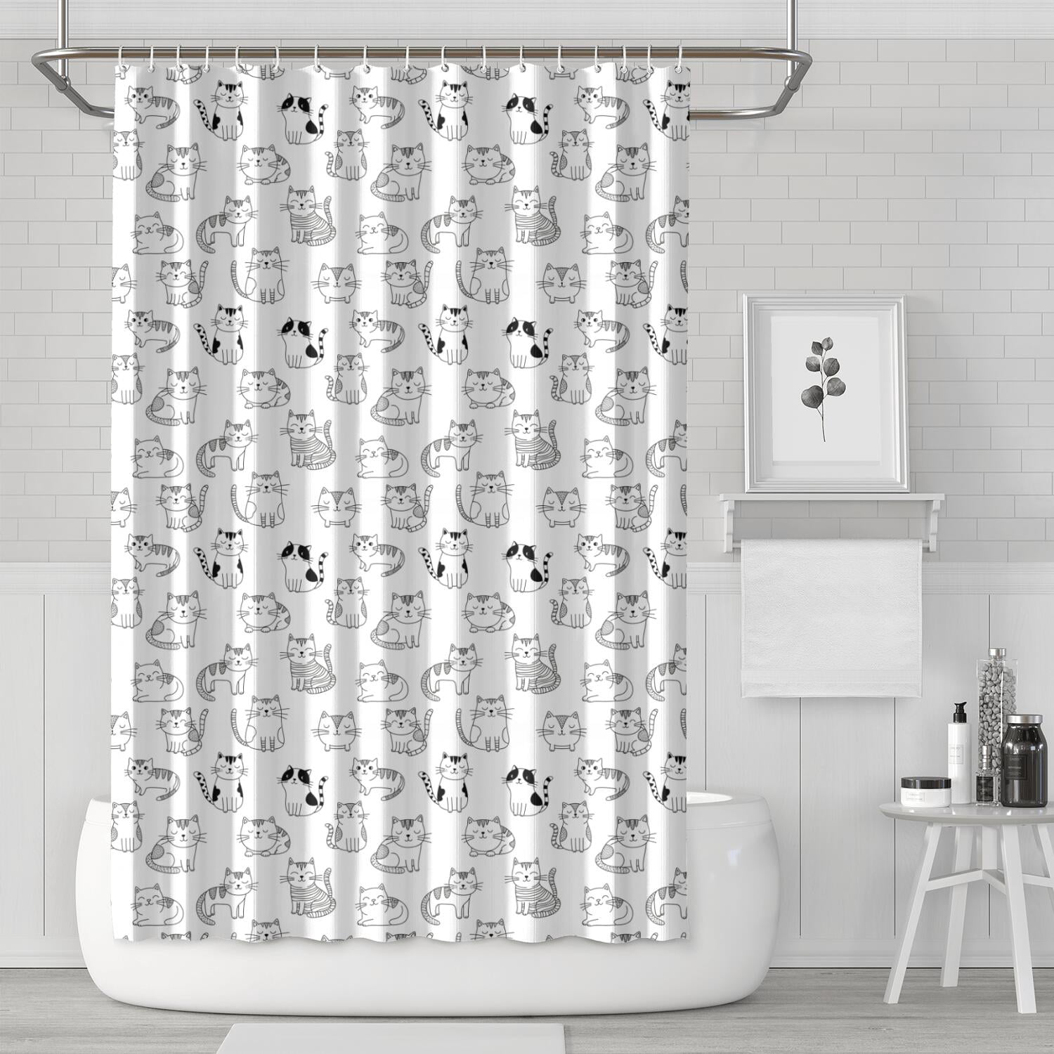 Basics Bathroom Shower Curtain, Water Resistant Fabric with Grommets ...