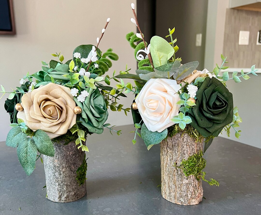 2 Piece Floral Enchanted Centerpieces in Tree Stump, Wedding, Baby ...