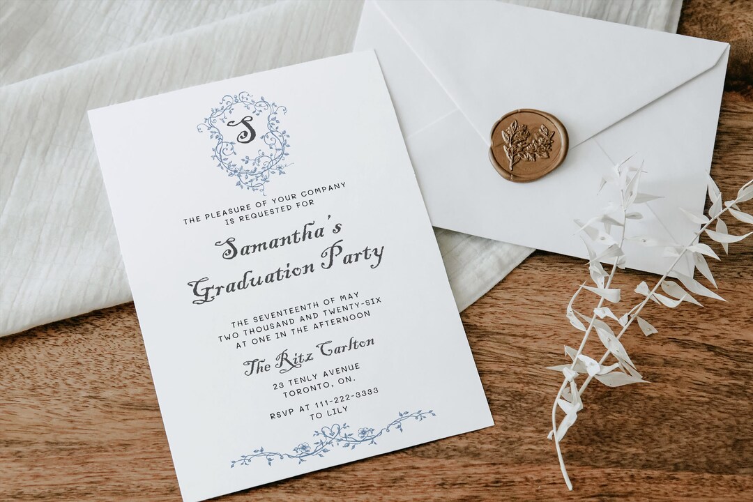 Blue Floral Chinoiserie Graduation Party Invite | Elegant Garden ...