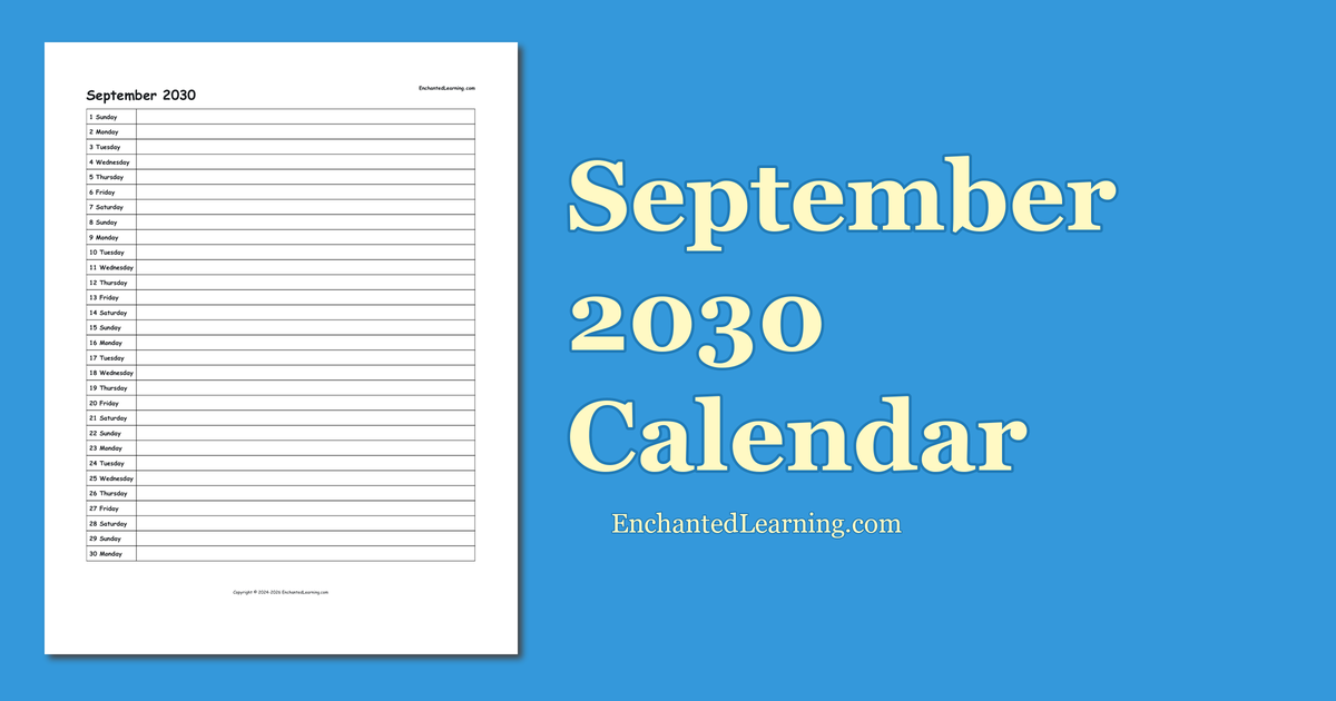 September 2030 Scheduling Calendar - Enchanted Learning