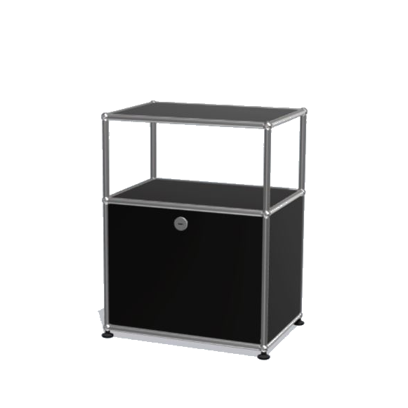 USM Haller 1x2 모듈(하단 드롭다운 도어+패널): 크롬 프레임과 ‘볼 조인트’가 만든 시스템 수납 – TRDST