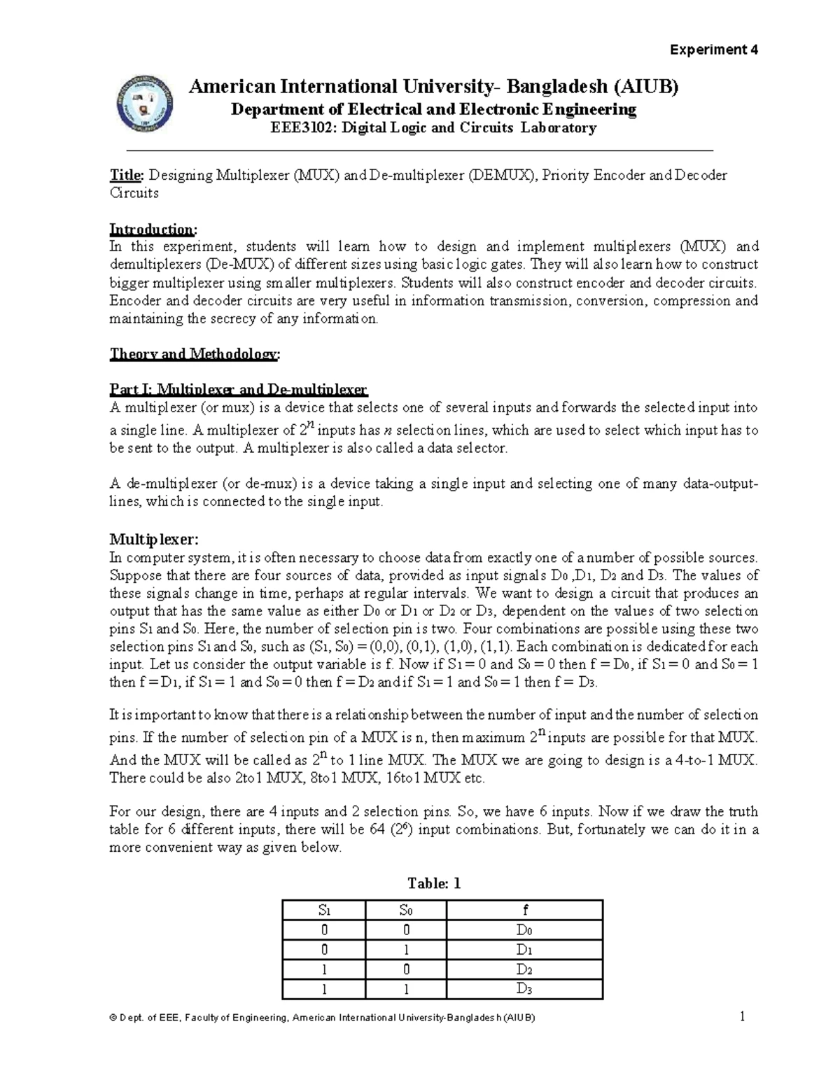 Lab Report Multiplexer Demultiplexer and Encoder Decoder - EET130 ...